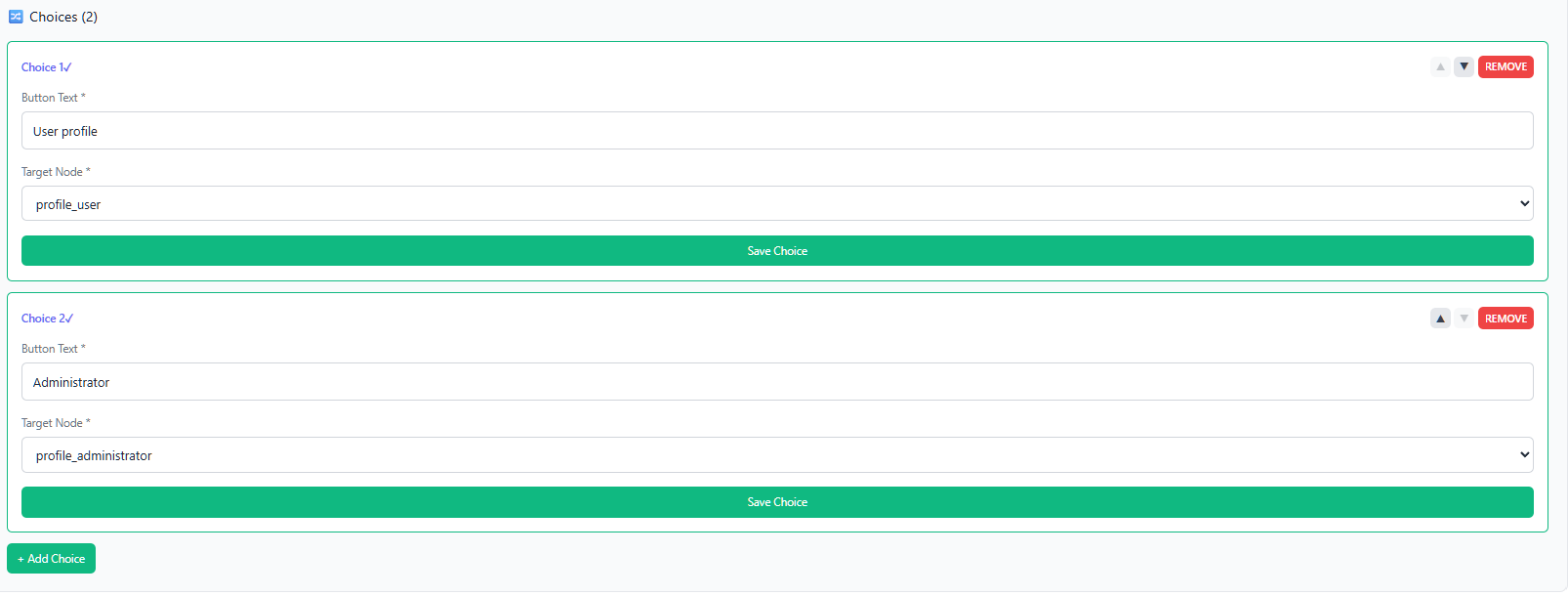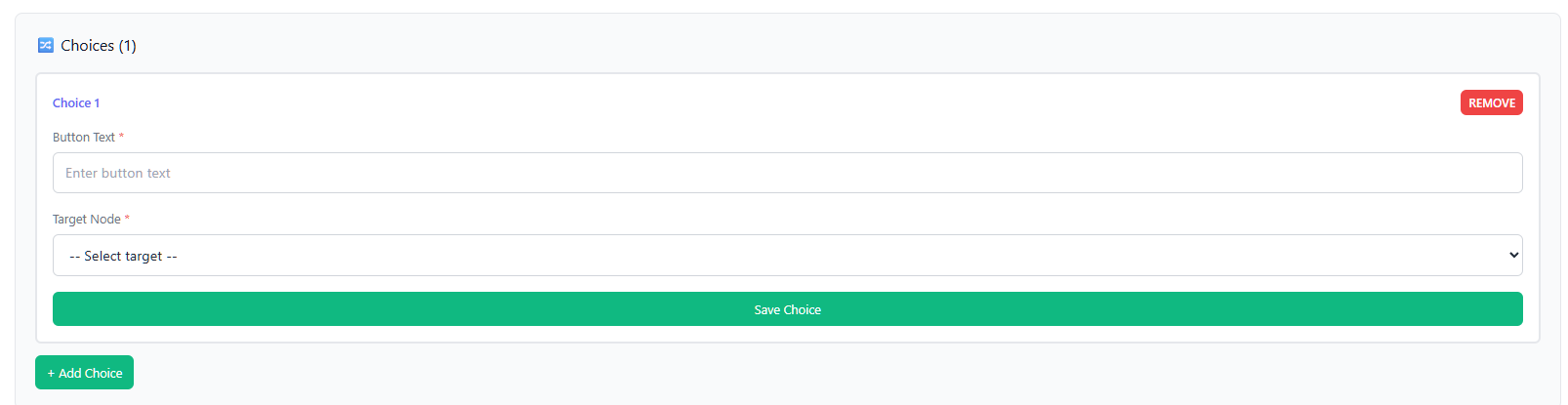 The Save Choice button saves the choice only if both fields are filled in. The REMOVE button deletes the choice.