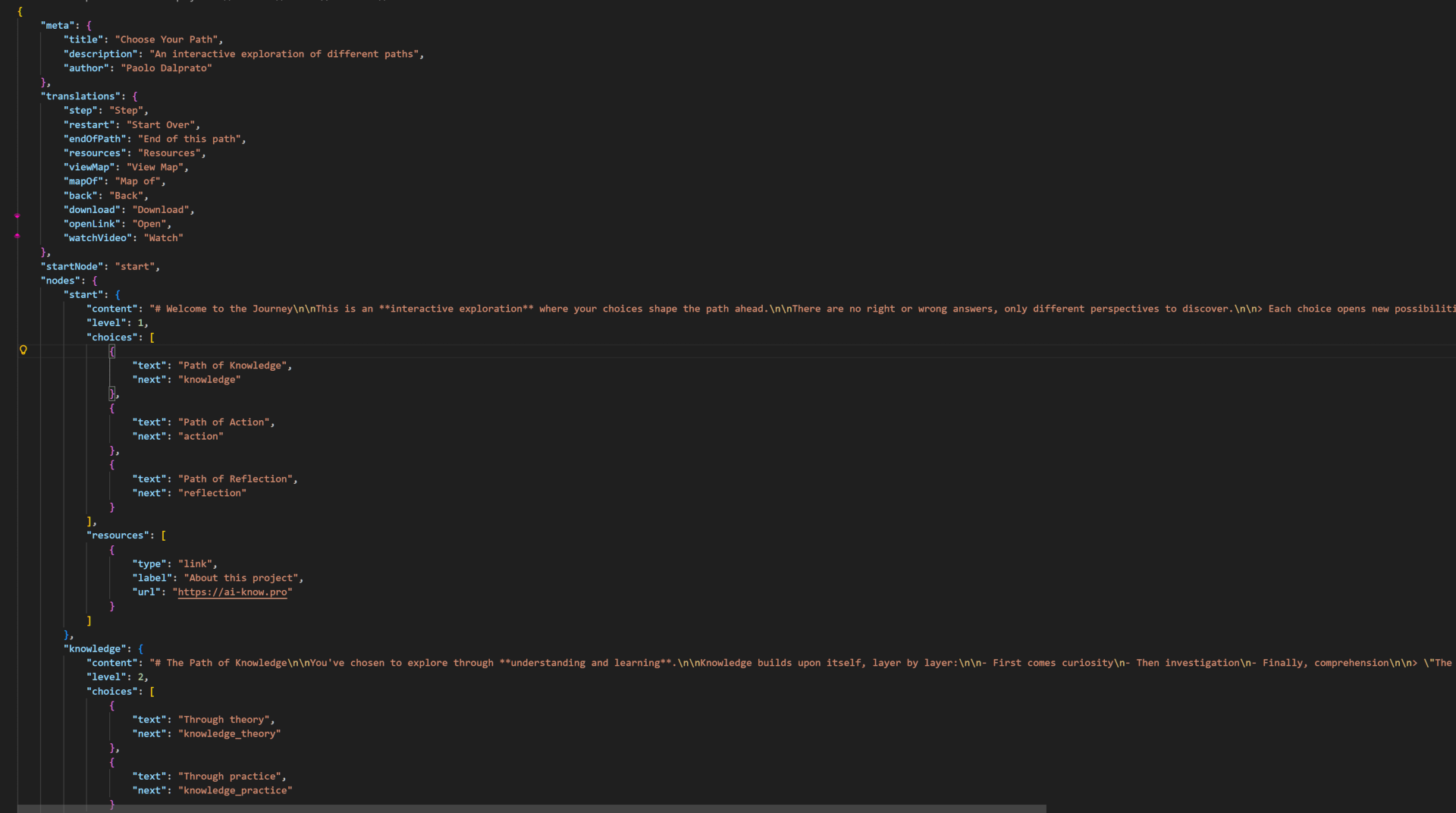 - nodes: the object containing all nodes with their content, choices, and resources