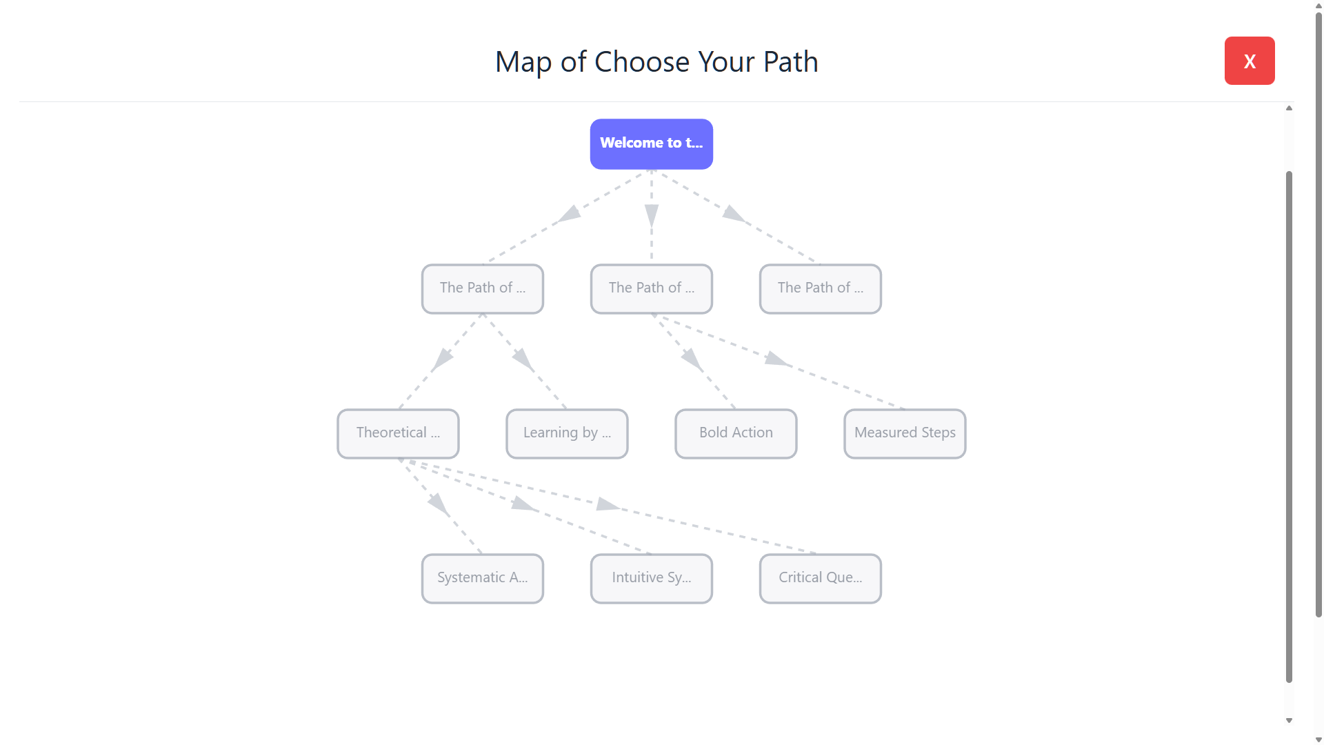 Il pulsante "Vedi mappa" apre la visualizzazione ad albero del percorso, si può utilizzare anche per spostarsi nella struttura, vedi il paragrafo successivo.