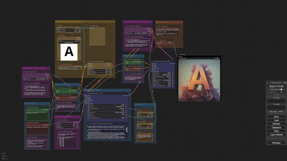 Spingendoci oltre, troviamo interfacce come ComfyUI che portano il concetto di controllo creativo a un nuovo livello. È un'interfaccia che permette all'utente di assemblare liberamente i "mattoncini" del processo creativo, come in un sofisticato gioco di costruzioni. Questo approccio non solo amplia le possibilità creative, ma trasforma l'intero processo in un atto di design del flusso di lavoro creativo stesso.