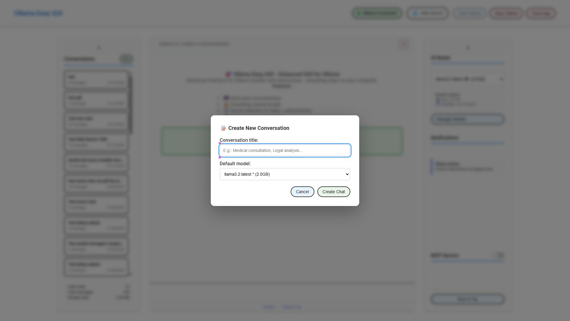 The popup shows the default model (the one selected in the right sidebar), but you can change it for this specific conversation. Confirm to open a new chat ready to receive your first message.