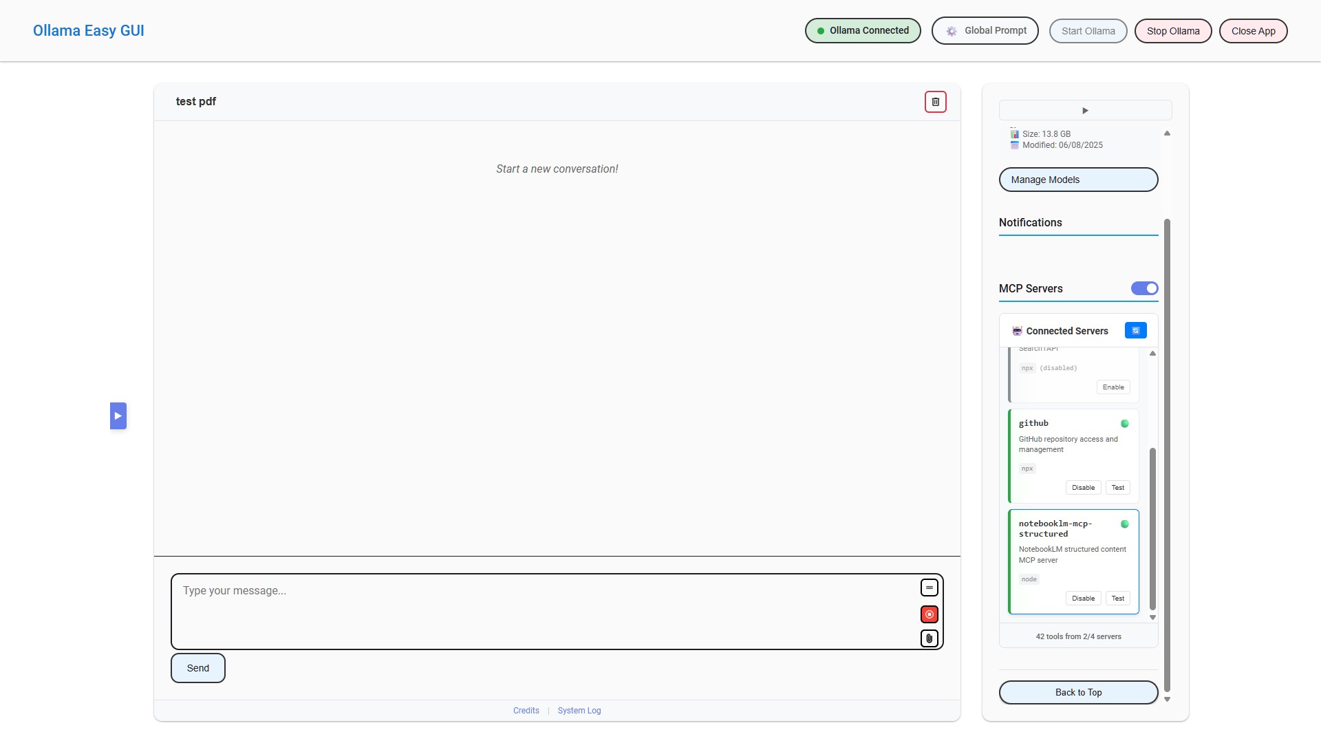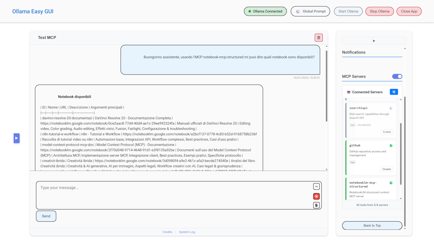"The model doesn't use the tools" - Verify that MCP is active (blue switch) - Verify that the specific tool is activated in the panel - Try a different model (it might not support function calling)